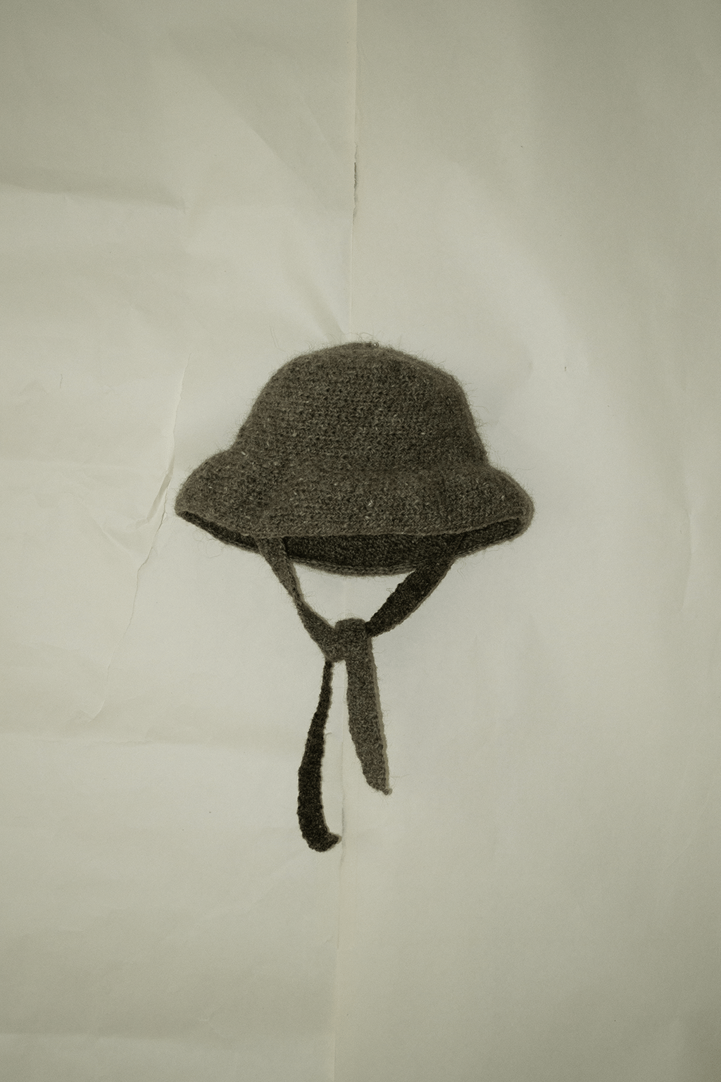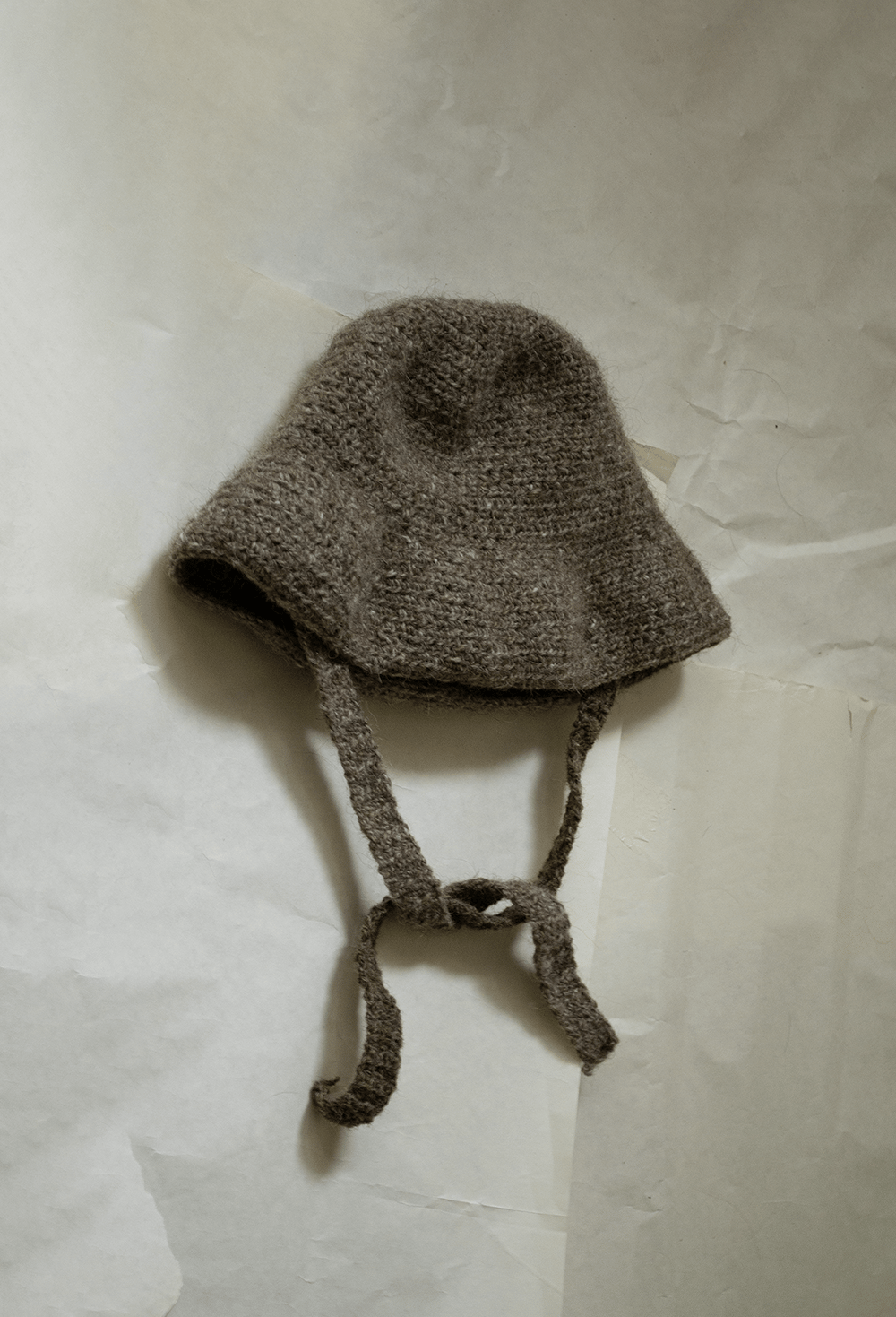 made of icelandic wool with subtle dusts. the brim is designed to be folded or covering the forehead. inspired by 20’s cloche hats.