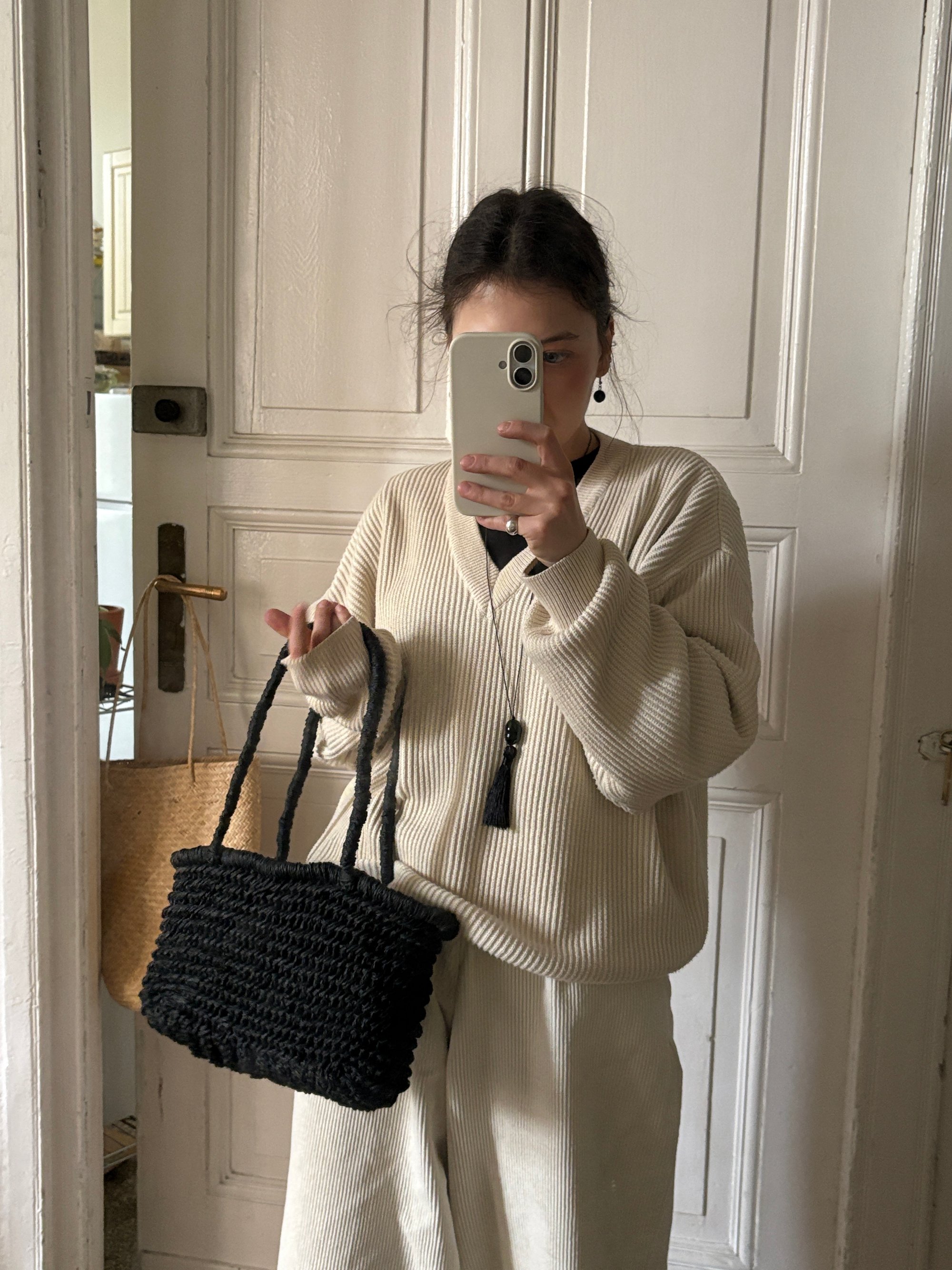 thick and structured basket with a firm bottom and chunky straps